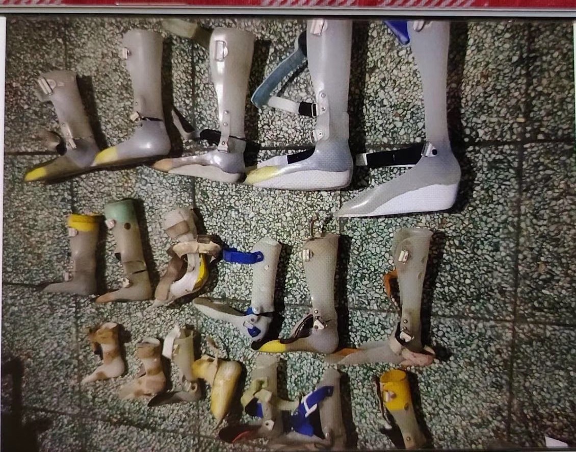 这是一个家长提供的孩子从小到大的支具图片。